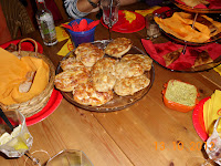 Wie Ihr seht gab es auch etwas zu essen ,selbstgemachte Frühlingsrollen - Gemüse-Hackrollen in Frühlings-Rollenteig lecker sag ich Euch ... und Pizza-Brötchen und Käuter-Butter mit Weißbrot und einem leckerm Nachtisch Mascapone-Erdbeertraum ...
